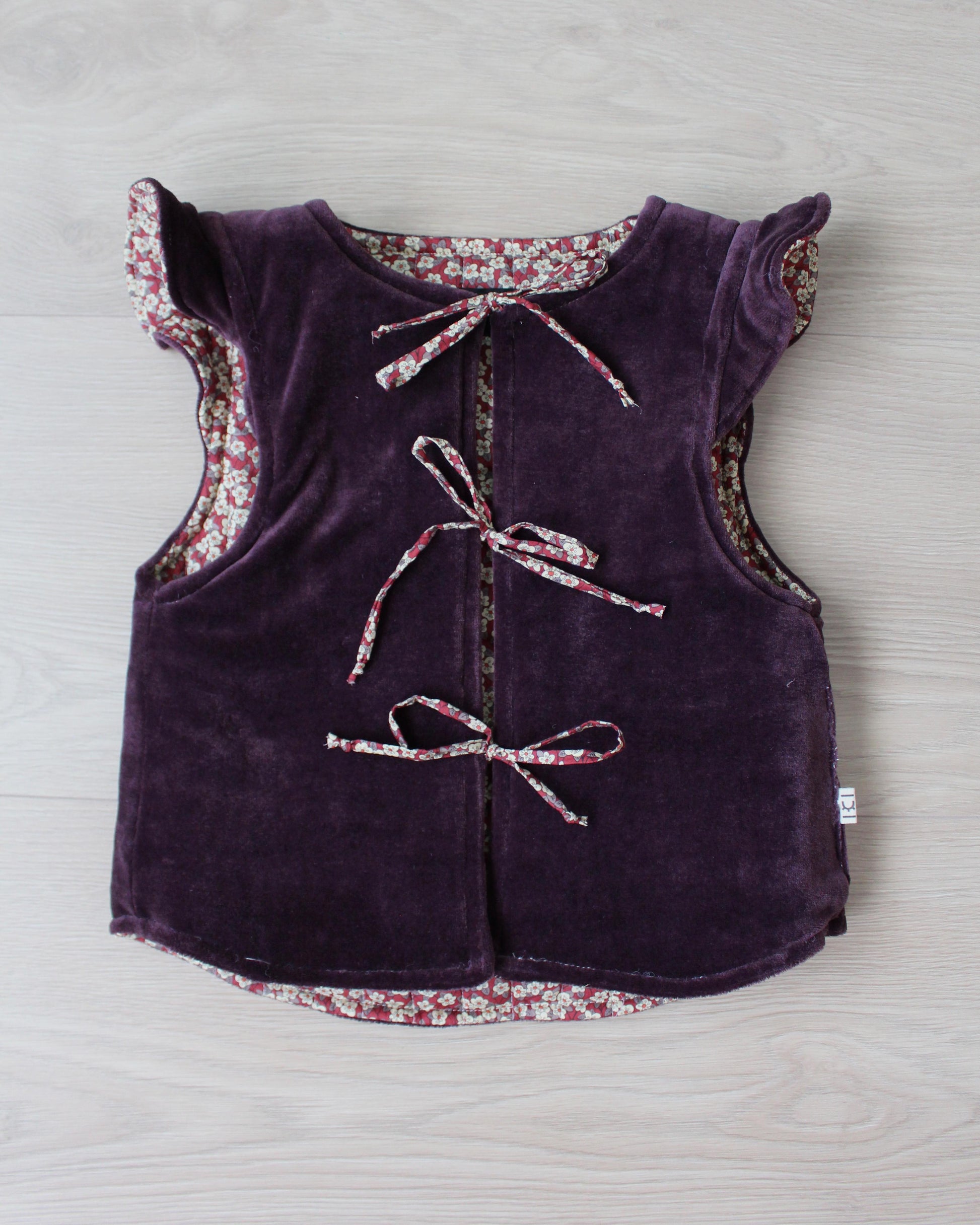 Chaleco para Niña Reversible en Liberty Ffion Rojo y Terciopelo Morado.