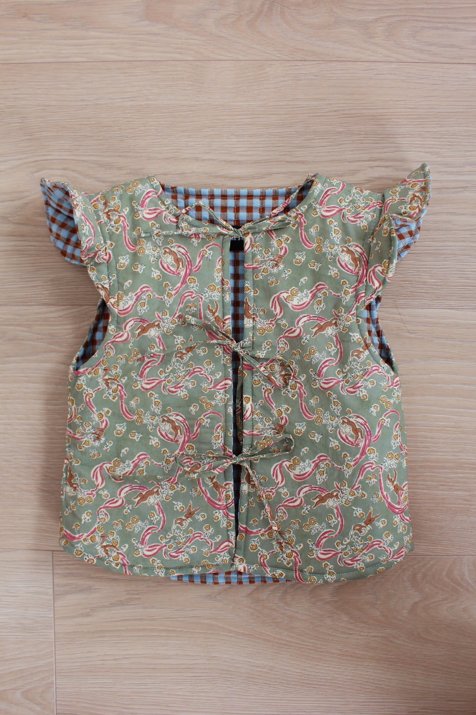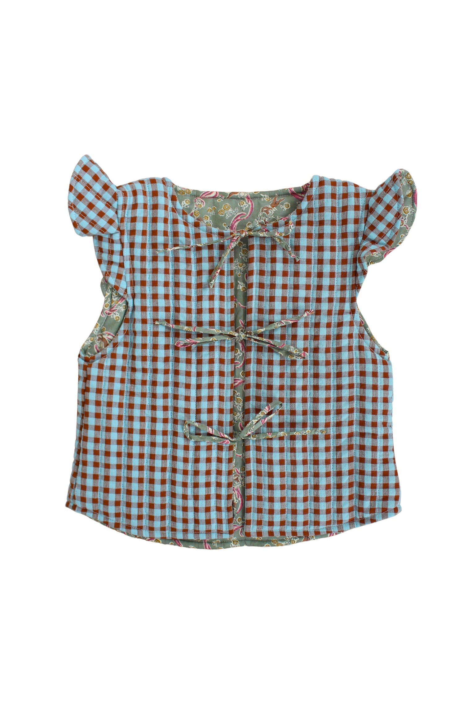 Chaleco para Niña Reversible en Vichy Marrón y Turquesa y Liberty Love Grandma.