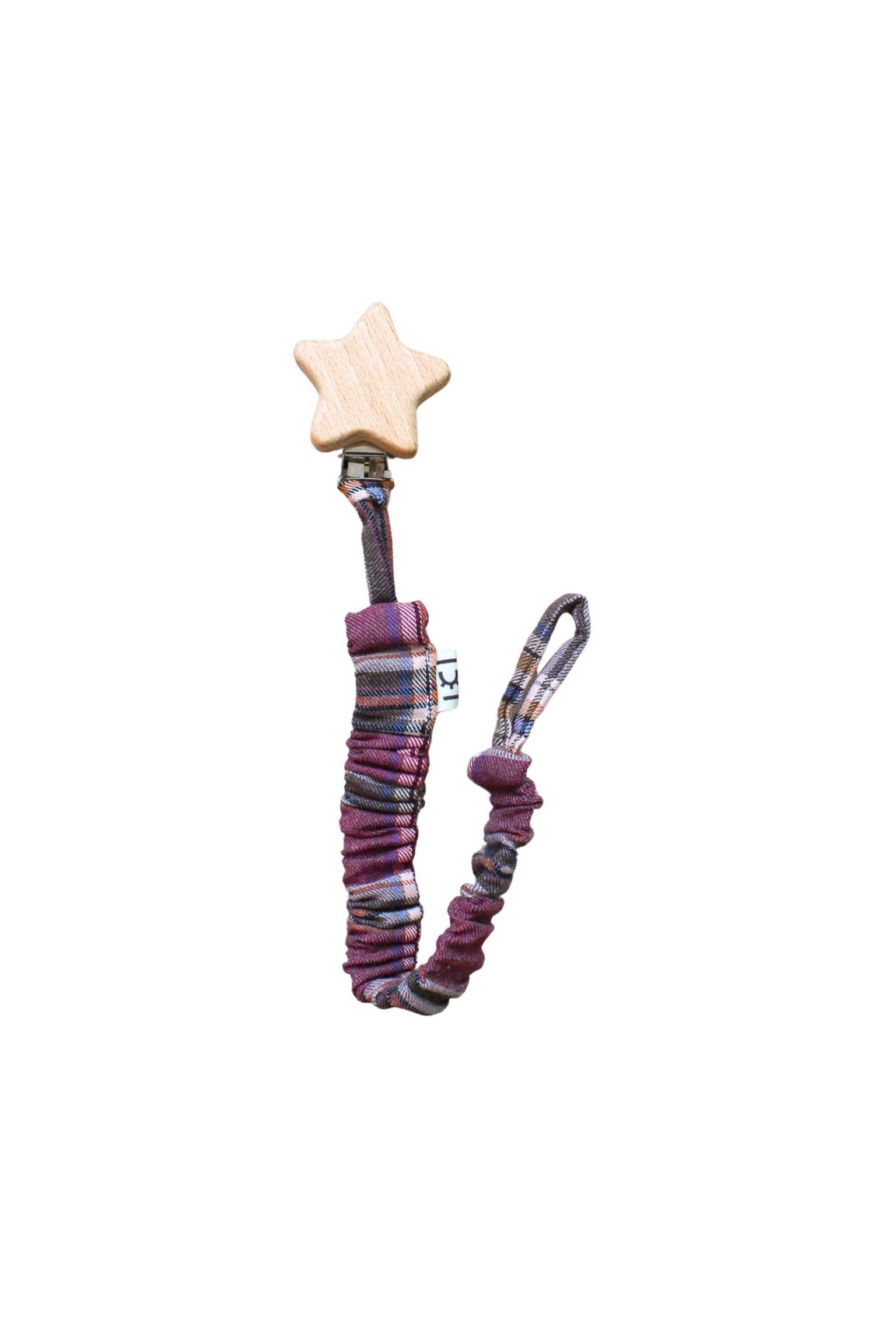 Pinza en forma de estrella de madera extraíble. Interior con goma blandita elástica.
