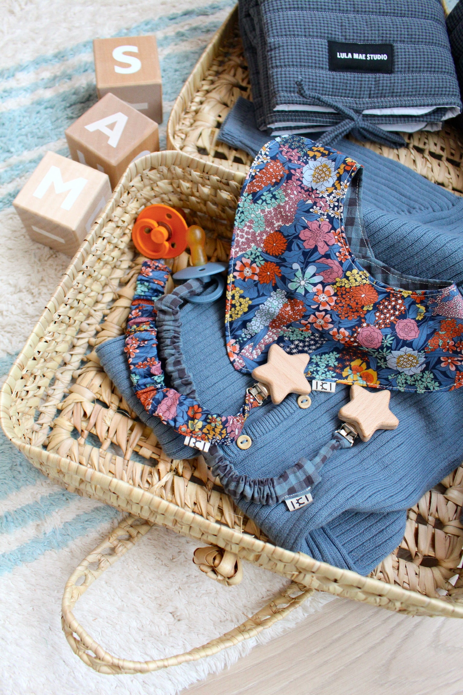 Pinza en forma de estrella de madera extraíble. Interior con goma blandita elástica.