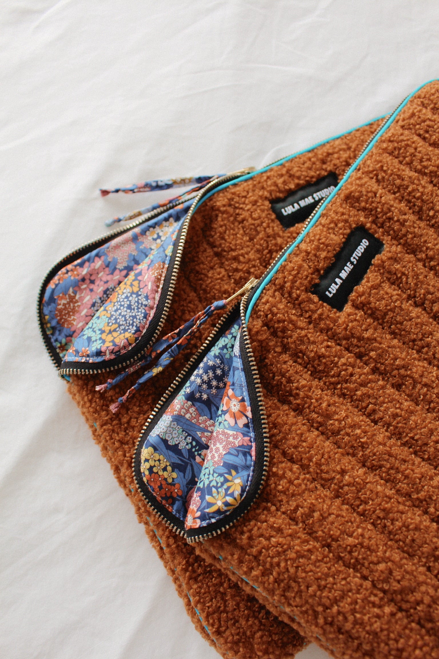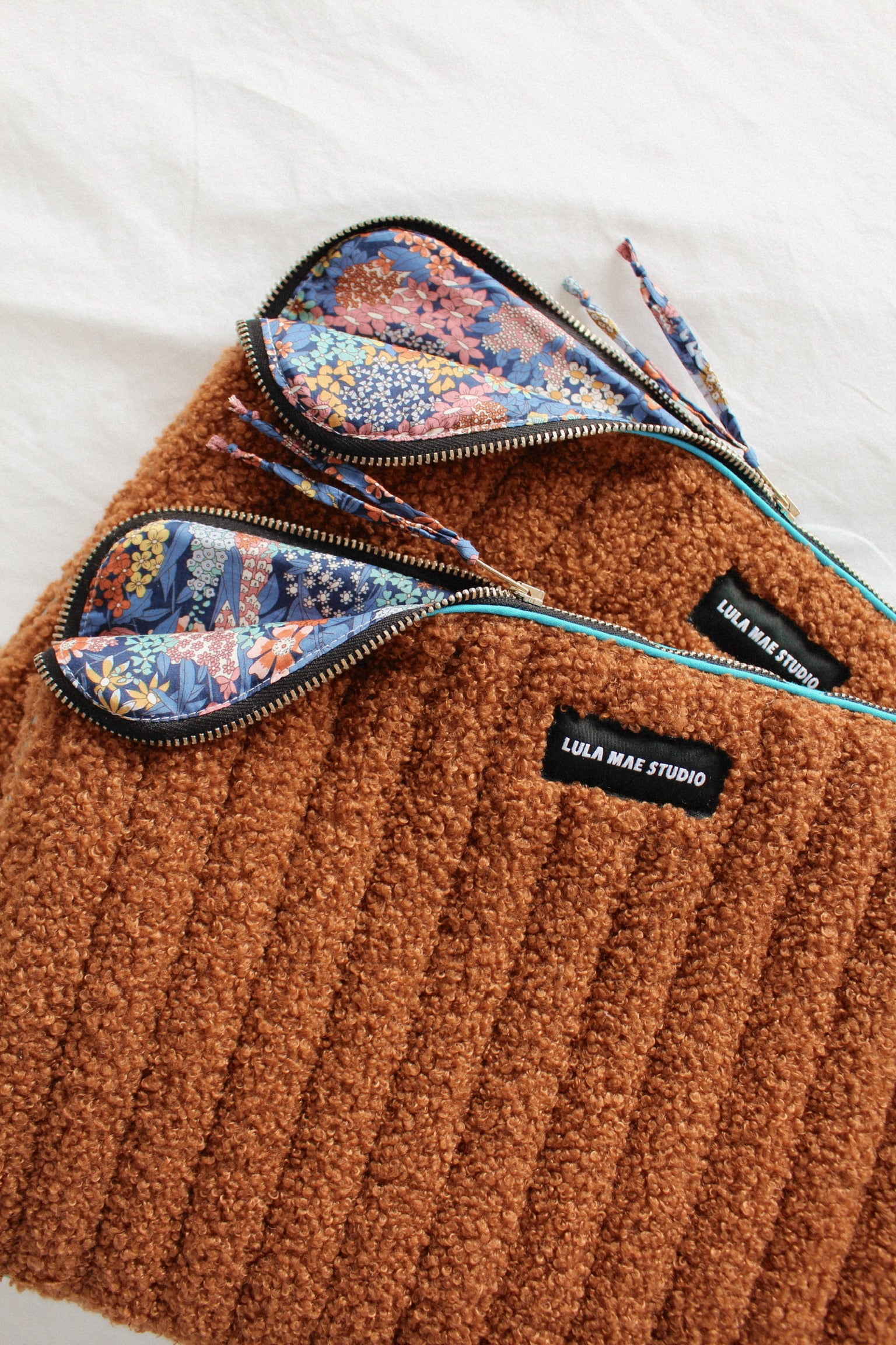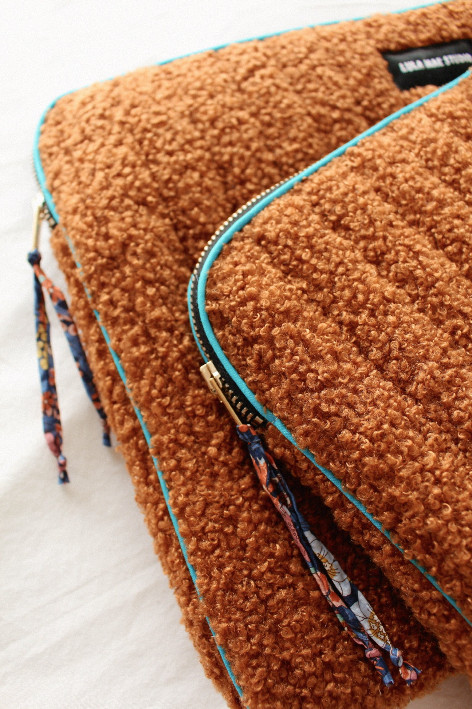 Funda para ordenador/portadocumentos en borreguito marrón.