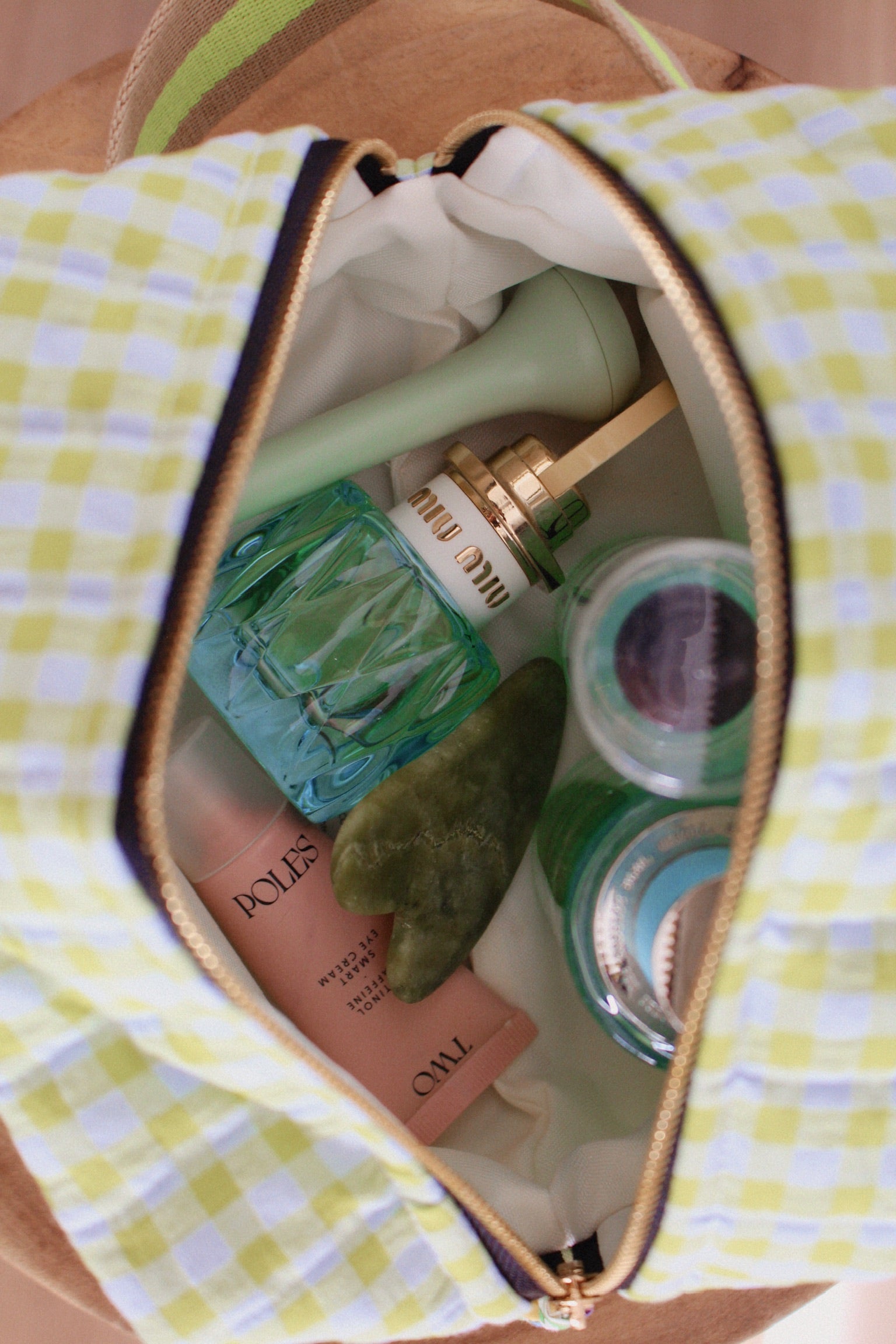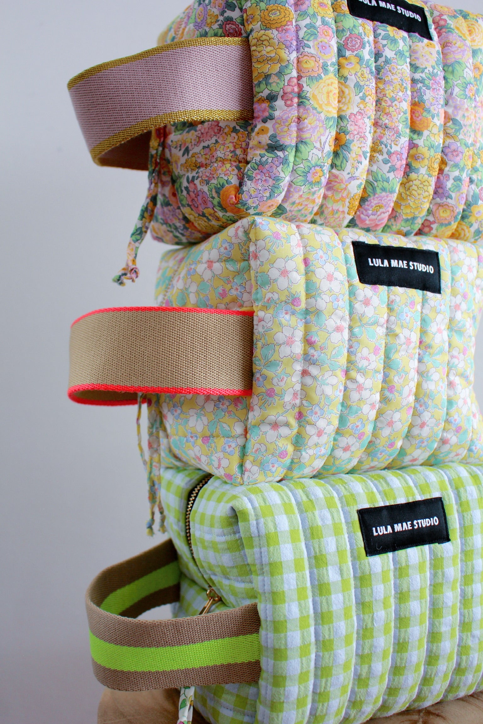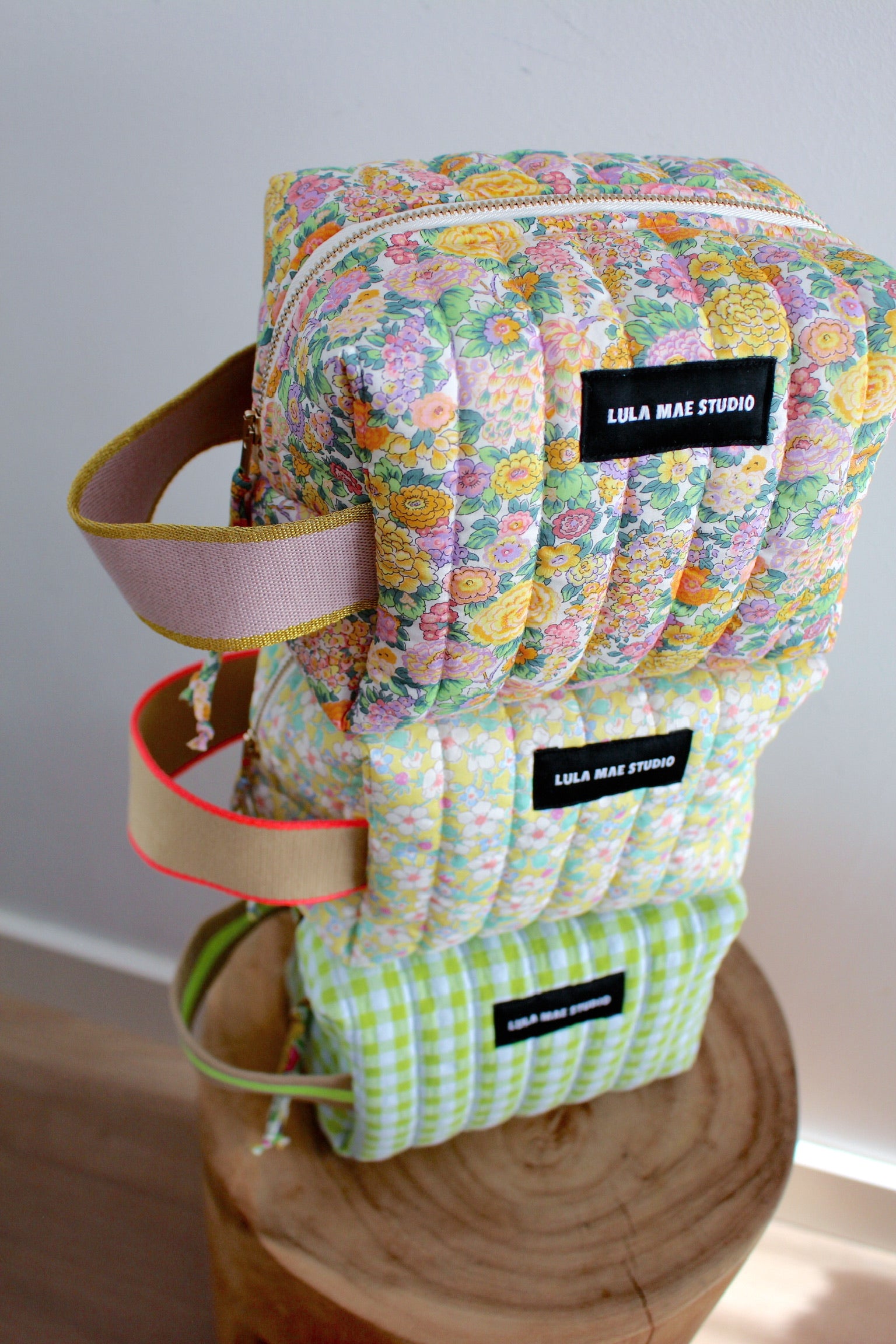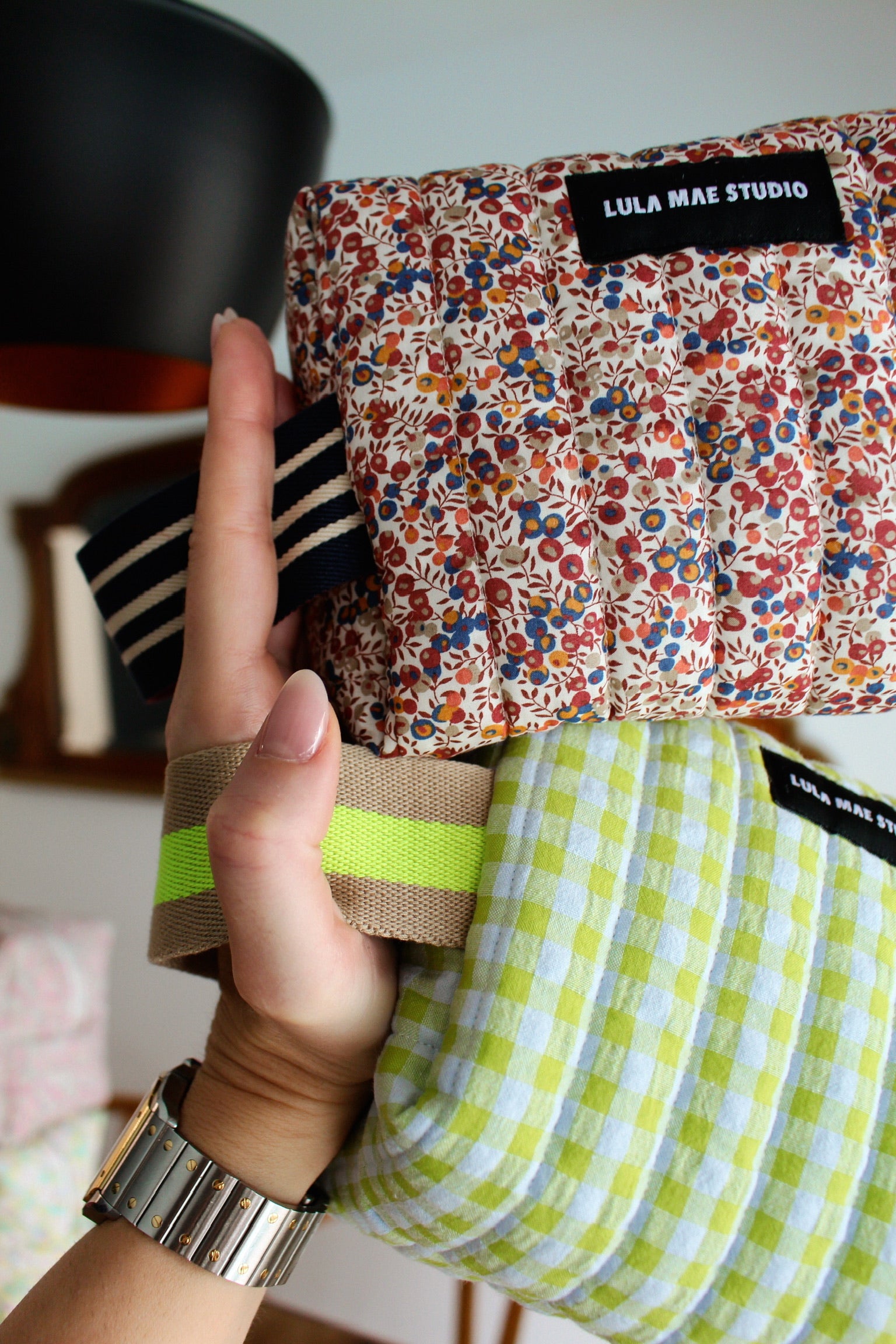 Cierre con cremallera metálica y tirador en lazo Liberty London. Asa lateral de cinta nylon fantasía.