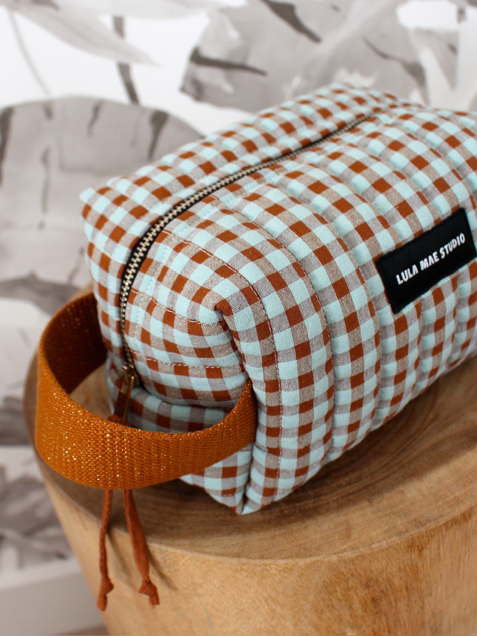 Neceser Cuadrado en Vichy Marrón y Turquesa
