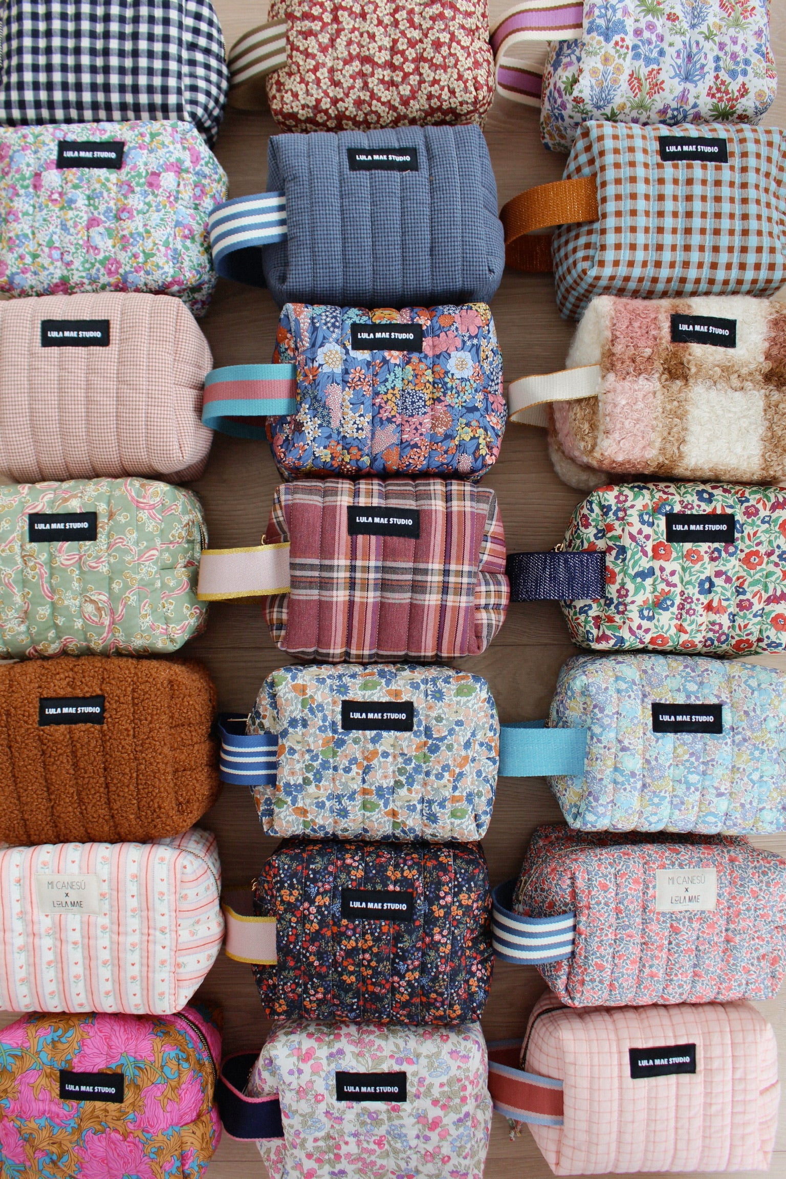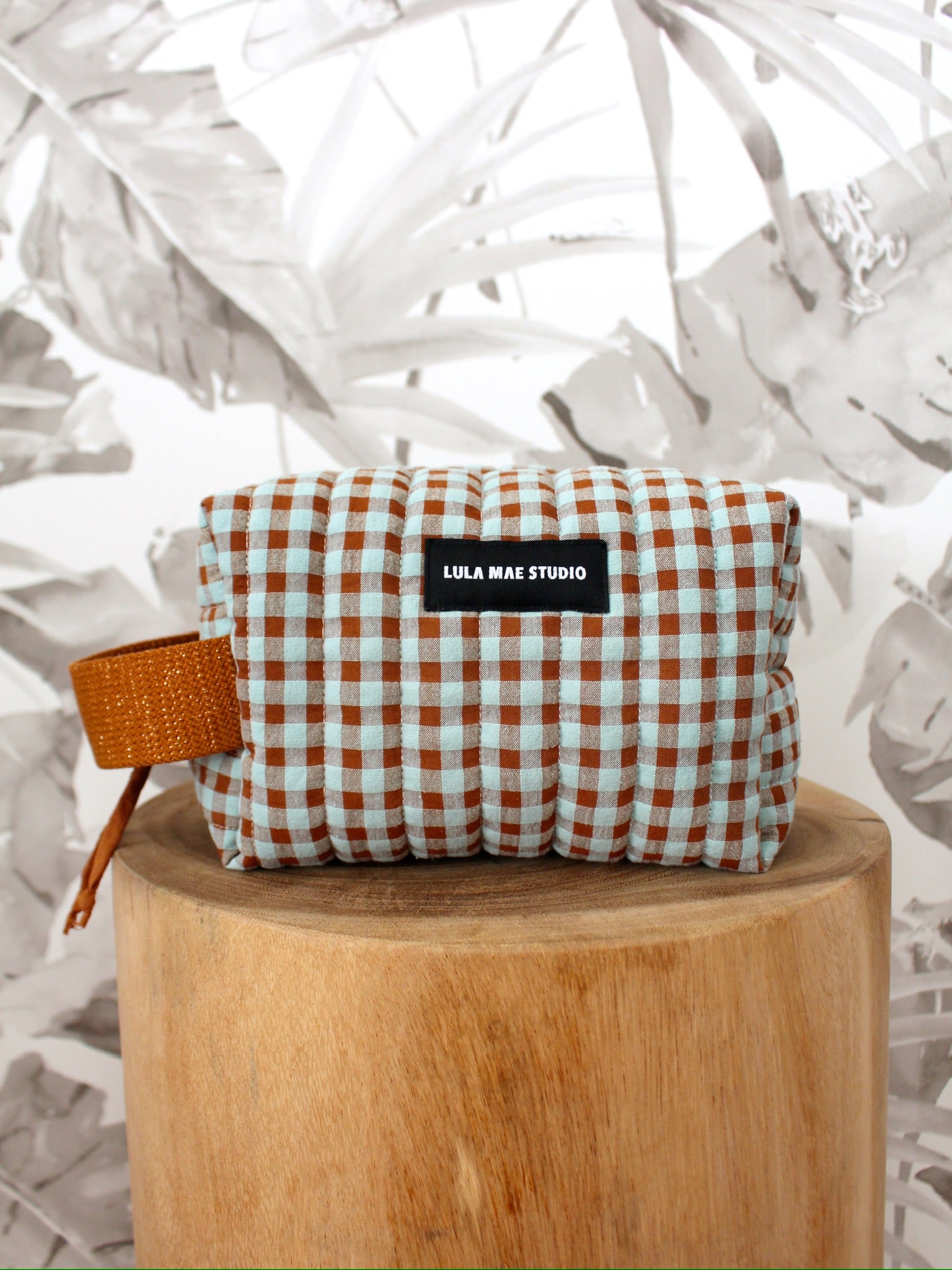 Neceser Cuadrado Vichy Marrón y Turquesa