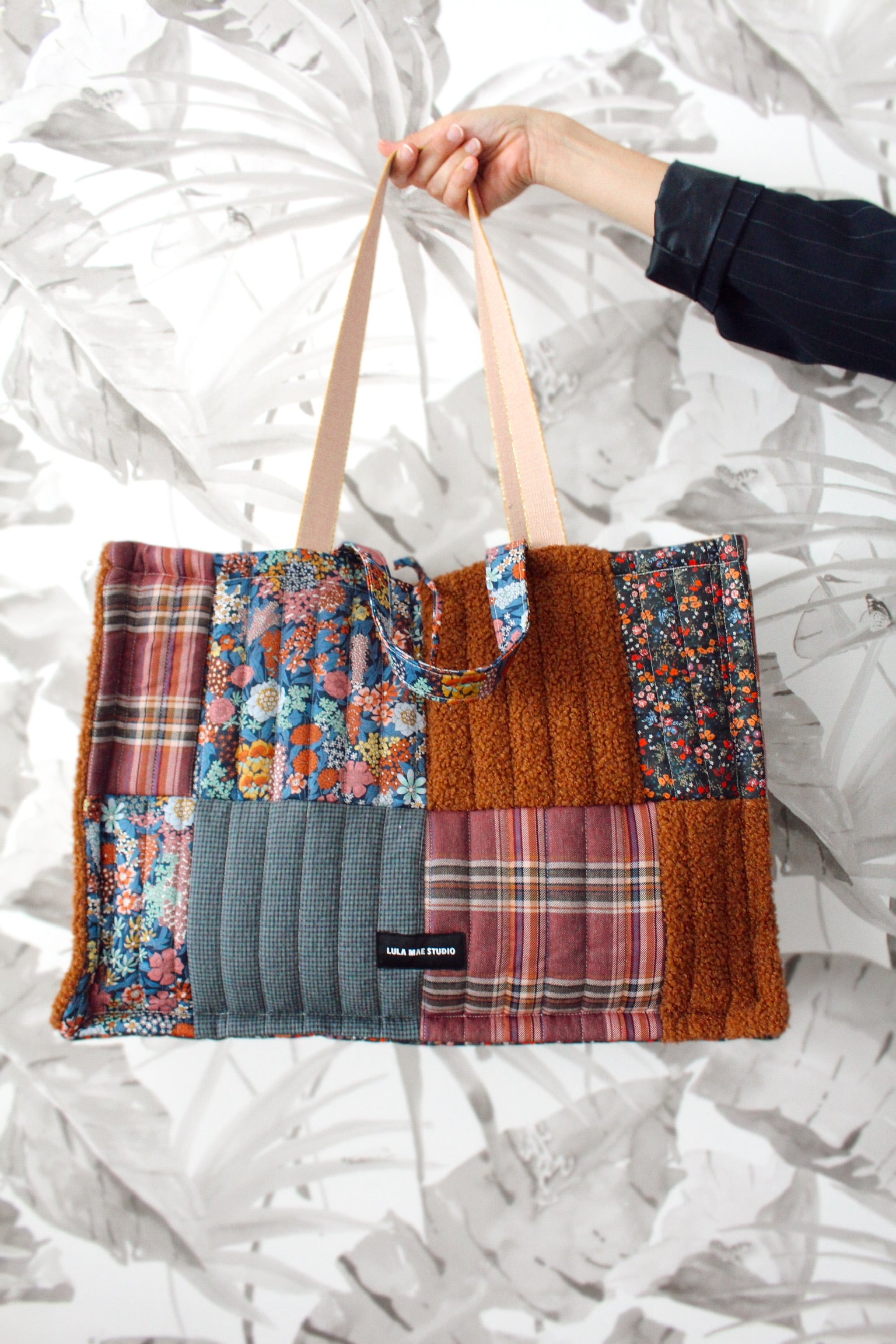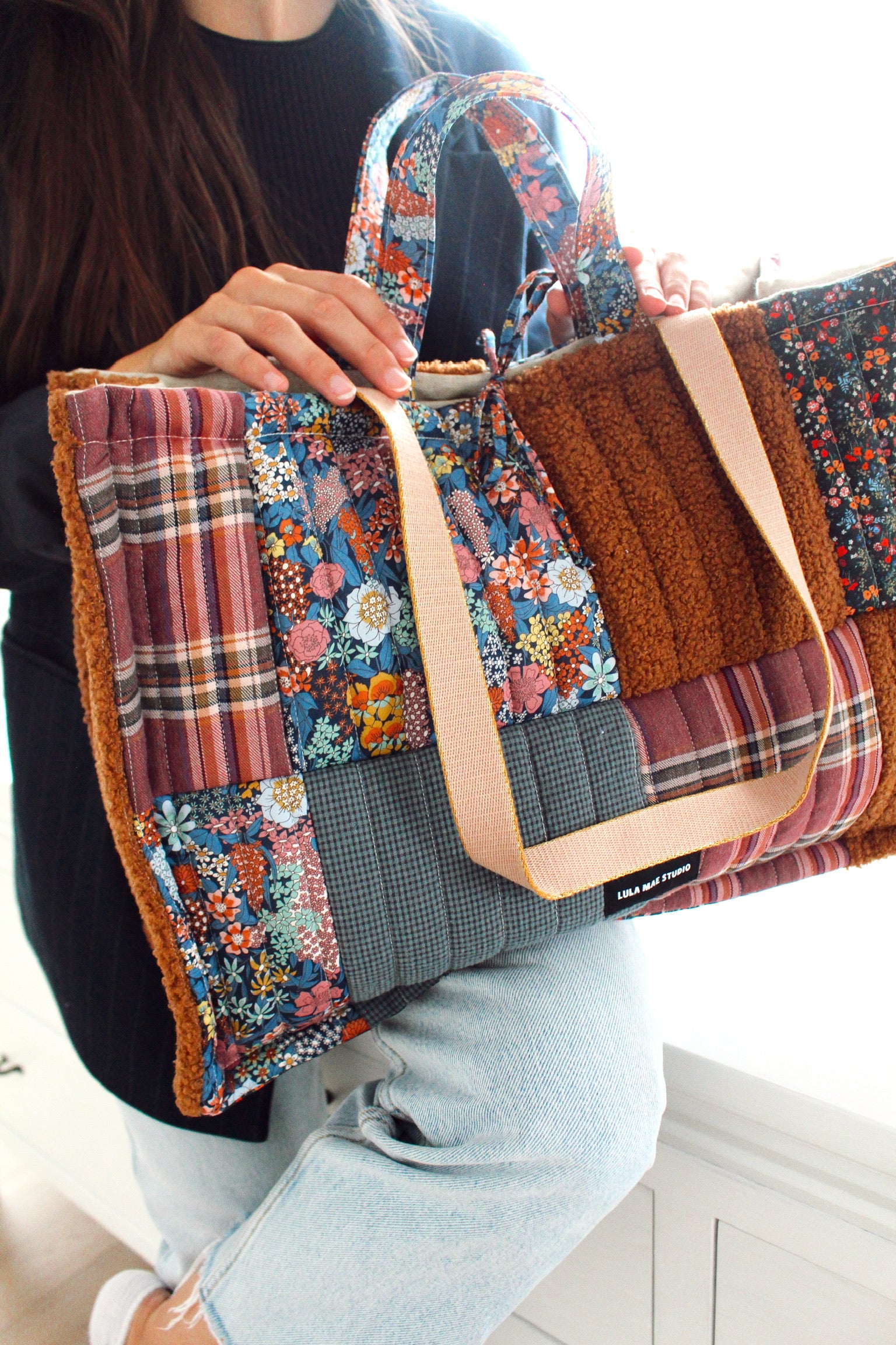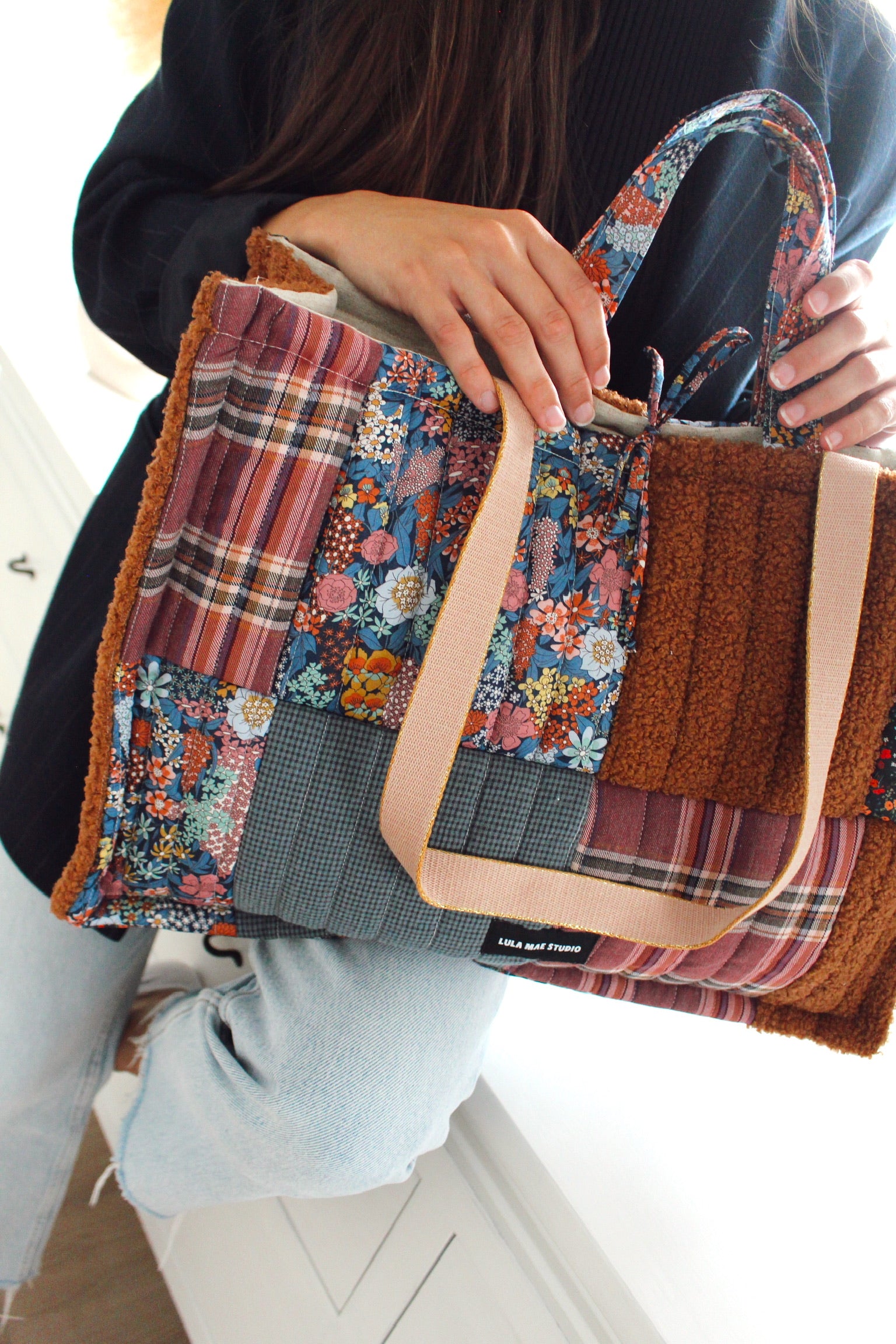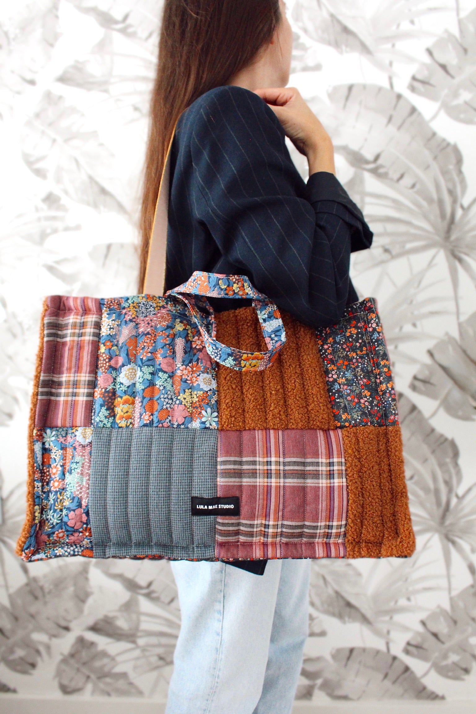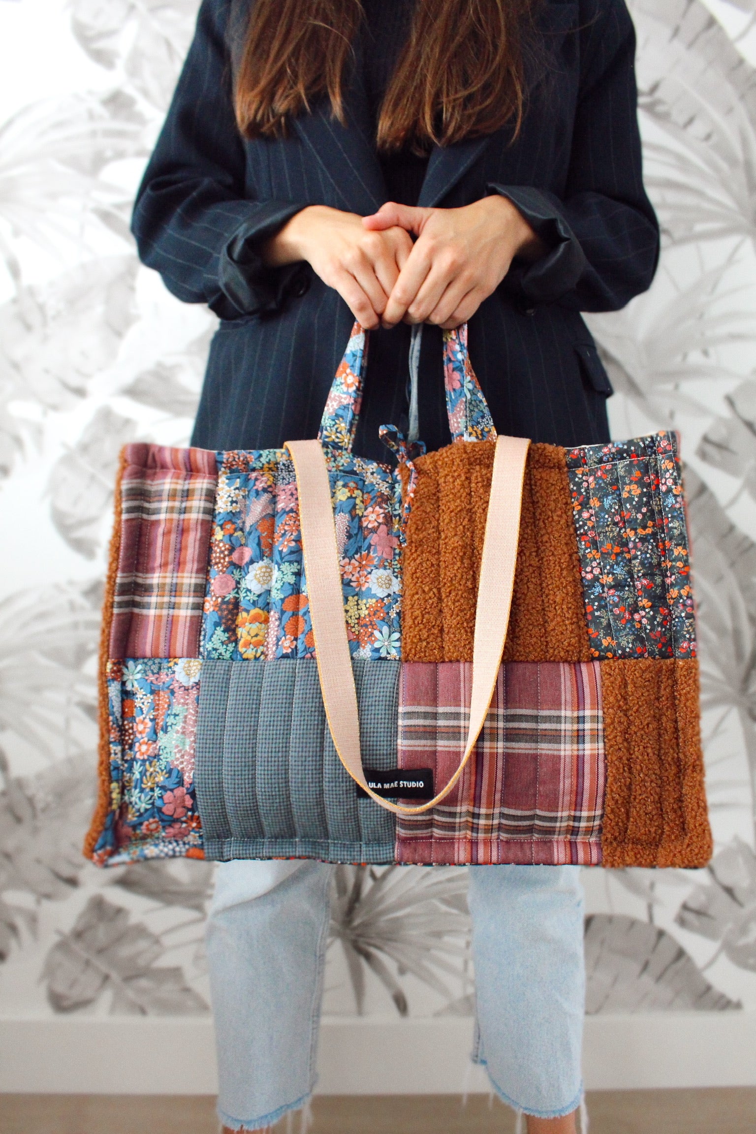 El interior va forrado en tejido efecto lino. Tiene doble asa para llevar en la mano o colgada en el hombro, dos bolsillos en interior y cierre de cordón para hacer lazada.